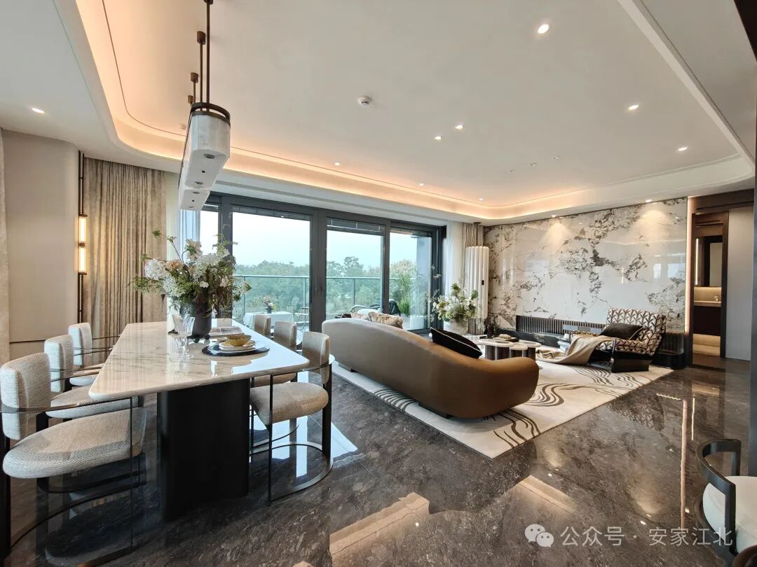 进入到项目建面约188㎡的实体样板间内,超大的标准感,外加通透的采光,给人一种天边大平层的感觉。