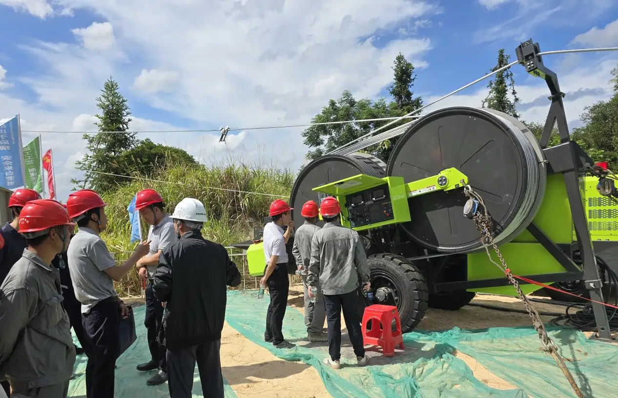自主研发的行业首创、国际领先的新能源牵张成套设备,在湖南株洲横店村~枫林(官庄)110kV线路工程中实现首次应用,这标志着我国在架空输电线路牵张施工装备领域实现从跟跑到领跑的重大跨越。